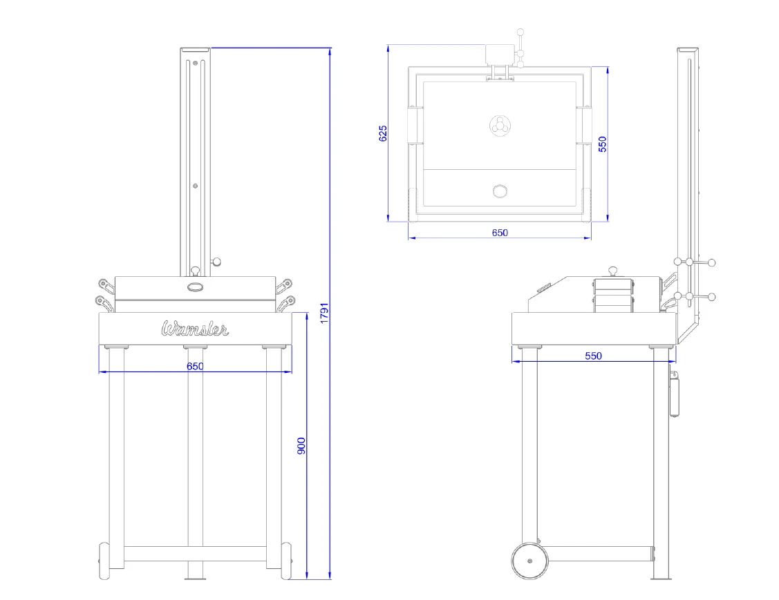Der handgefertigte Edelstahl Holzkohlegrill besticht durch seine massive Konstruktion vom Lifter-Turm bis hin zu den Standfüßen. Beim großflächigen Feuerraum kann durch Drehregler optimal Verbrennungsluft zugeführt werden. Des Weiteren können das Grillgitter und/ oder die Grillhaube über den kompletten Lifter-Turm hinweg einzeln stufenlos verstellt und bei Bedarf fixiert werden. Durch seinen großen Verstellweg ermöglicht der Lifter-Turm auch ein optimales Grillergebnis über offenem Feuer.