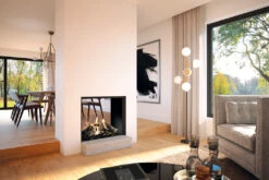 Der Maestro 75 Tunnel Eco Wave Gaskamin von DRU ist mehr als nur ein herkömmlicher Kamin – er ist ein vielseitiger Kamineinsatz, der sich perfekt als Raumteiler in Ihrem Zuhause eignet. Mit zweiseitiger Feuersicht, sowohl auf der Vorder- als auch auf der Hinterseite, bietet er die Möglichkeit, verschiedene Bereiche Ihres Hauses stilvoll voneinander zu trennen, ohne die Gemütlichkeit des flackernden Feuers zu opfern.