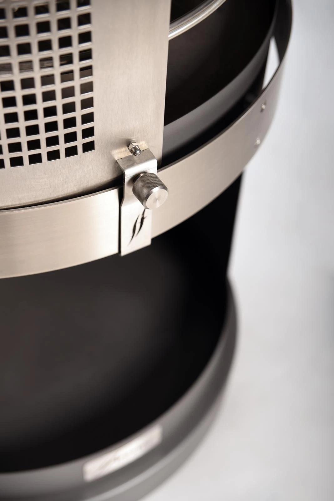 Durch sein schlankes und elegantes Design wird der Grillkamin zu einem Hingucker in Ihrem Garten. Ein Highlight ist die 360° umlaufende Funkenschutztür, welche einen besonderen Komfort bietet. Der Funkenschutz kann, wenn er nicht benötigt wird, problemlos nach hinten an den Brennraum verschoben werden.