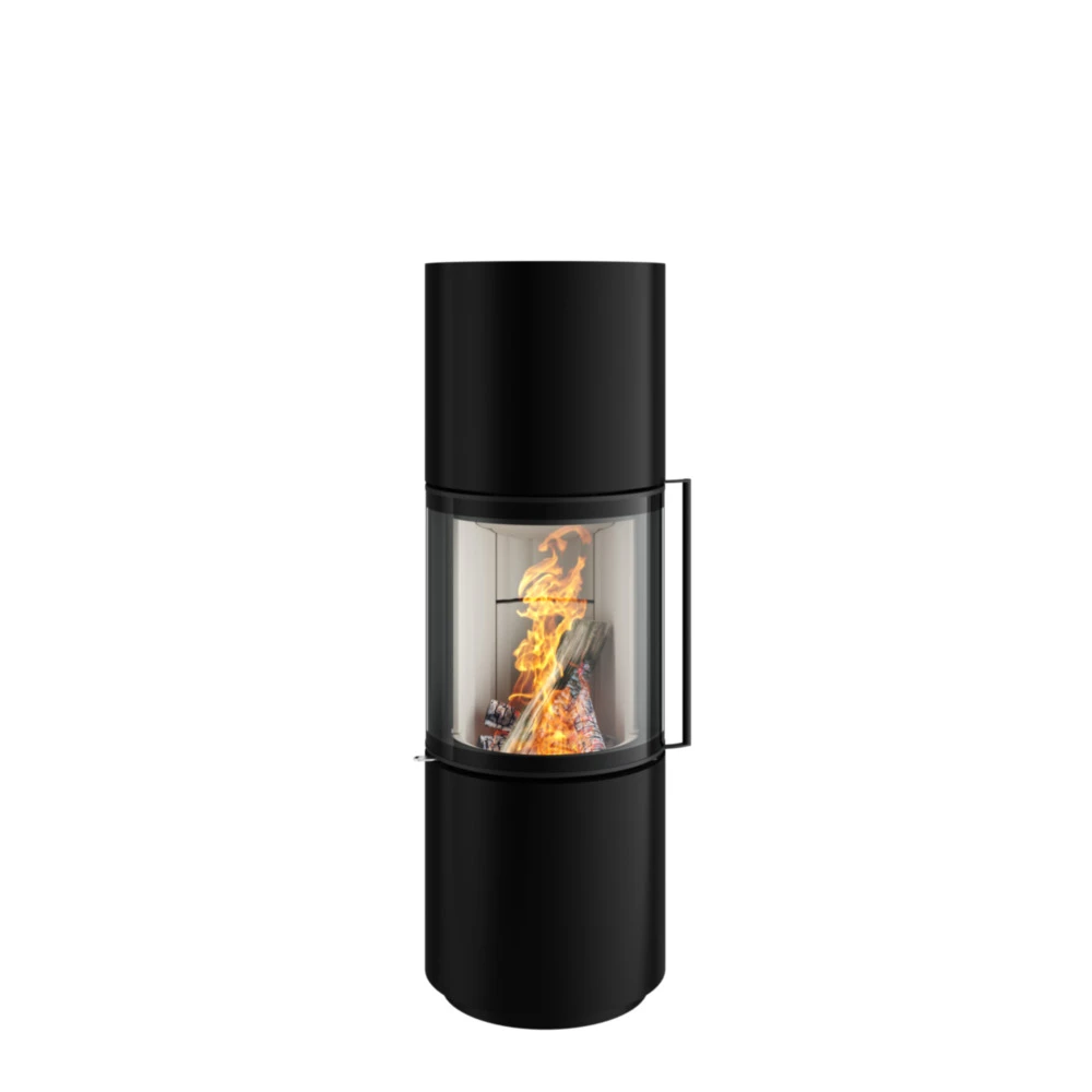 Das markante, kreisrunde Design des Passo wird durch die klappbare Glastür mit einer großzügigen Panoramascheibe perfekt in Szene gesetzt. Diese gewährt dem Betrachter eine beeindruckende 180-Grad-Sicht auf das faszinierende Spiel der Flammen im Inneren des Schwedenofens. Mit einer Gesamthöhe von ca. 1,44 m und einem Durchmesser von ca. 48 cm fügt sich der Passo S mühelos in kleinere Räume ein, ohne dabei an Präsenz zu verlieren.